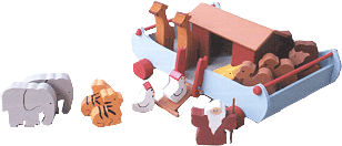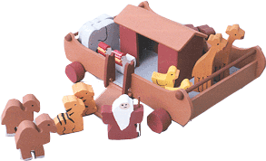(elephants, kangaroos, lions, horses, penguins, giraffes, rabbits, and deer). The ark measures 10 inches long, 6 inches tall, and 3/4 inch wide. This entire set is yours for only $44.95.