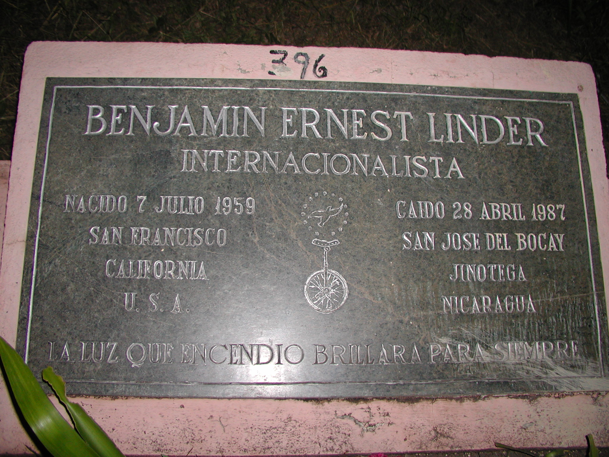 Ben Linder's grave "Benjamin Ernest Linder, Internationalist
