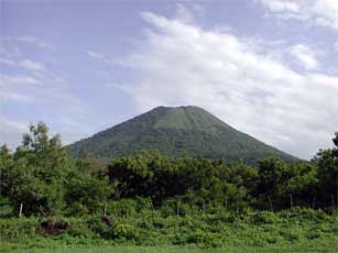 We left León on one of the worst road in Nicaragua (a victim of government corruption) to visit the Xochilt-Acalt project at Malpaisillo. On the way we passed what I think is the San Jacinto volcano which, of course, I wanted to climb. Look at its almost perfect symetrical cone shape.