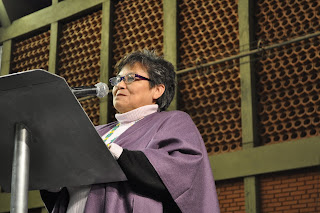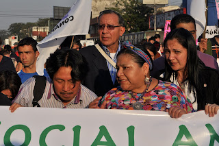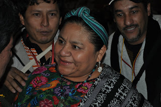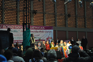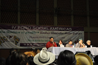 At the opening ceremony, we had a mixture of rousing speeches and music, culminating in a speech by 1992 Noble Peace Prize winner Rigoberta Menchu. I was surprised to see Menchu at the head of the march, as well as a featured speaker at the forum. It's been years since I've seen her at an event like this, and she was no where to be seen either at the 2008 Indigenous Summit or Americas Social Forum in Guatemala. (Just as a side note, Menchu kept referring to this as the fourth World [rather than Americas] Social Forum. Small point, I know, but it does show her distance from the process.)