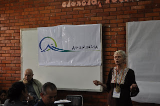 Amerindia, the organizer tells us, was formed by theologians to support bishops at the 1978 conference in Puebla. Since then, it has broadened out into a network of communities and social movements, and has always been involved in social forums. Amerindia is oriented toward liberation theology and the liberation of Latin America. For this reason, they have an interest in the Buen Vivir. They listened to the ideas of BuenVivir at the WSF in Belem in January 2009, and realized the need to apply them to everyone, not just Indigenous peoples. Their Christian faith lead them to this position, it is part of their work as a network of ecumenical Catholics bringing the gospel to the poor.