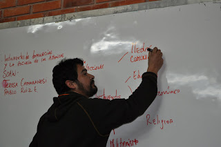 So, instead of watching a video, organizers Theresa Cameranesi and Pablo Ruiz began by breaking the session into three groups and having them discuss for 20 minutes the question “¿Como vivo yo en los paises actuales sistemas de dominación?” Following the break out discussions, a representative from each reported back to group. This was the first participatory workshop that I have attended at this forum; all of the others have featured lengthy speakers.