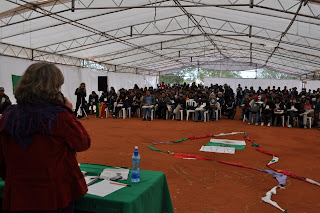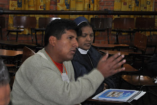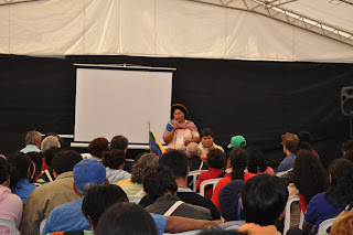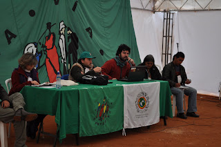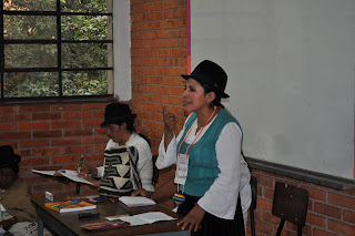 The last speaker was Floretino who pointed to the ideological pluralism that currently exists in Bolivia, particularly in the difficult relations with CONAMAQ and CIDOB (Raúl Zibechi has a recent essay that explains these divisions, "Bolivia and Ecuador: The State against the Indigenous People," CIP Americas (July 19, 2010), http://www.cipamericas.org/archives/2810). Part of the division is represented in the terminology of people alternatively referring to themselves as peasants, or Indigenous, or original peoples (these linguistic shifts and divisions emerged at the encuentro in Quito in June as well). He explained efforts to create a single unified bloc with all three, to globalize their demands rather than responding just to sectoral interests.