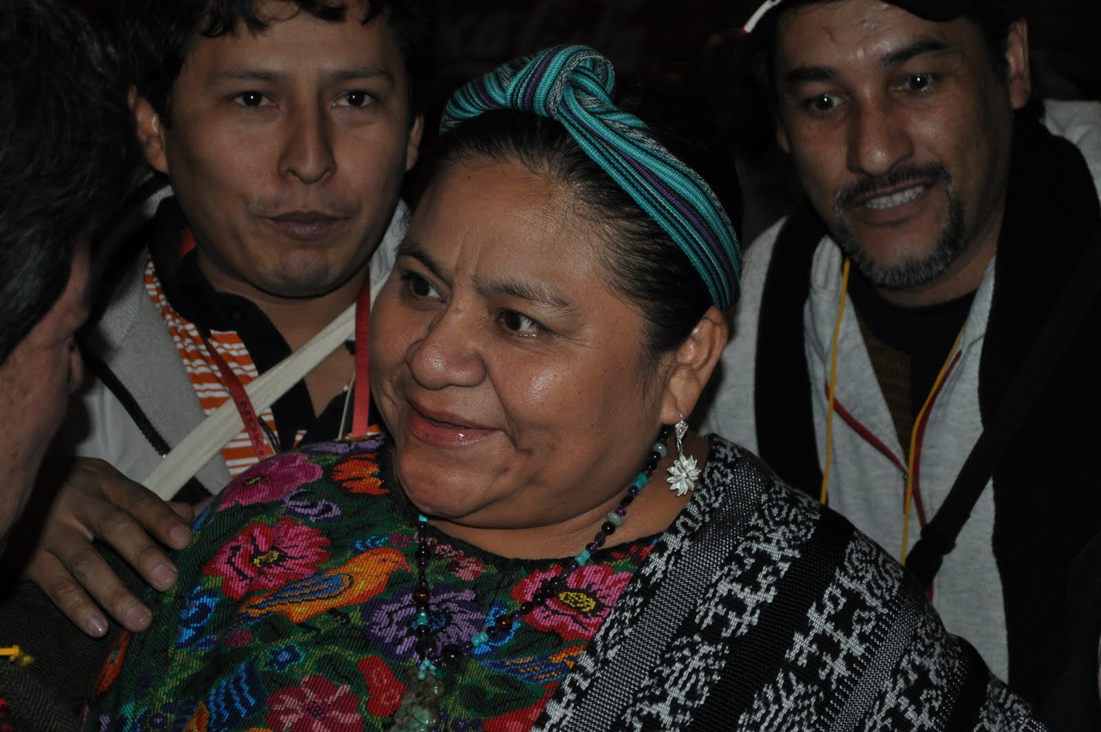 The evening panel “Buen Vivir y derechos de la Madre Tierra: avances y propuestas” began with a bit of a gruppie rush as Rigoberta Menchú walked in and people jockeyed for position to shake her hand and take her picture. The moderator Magui Balbuena called people to the stage so that panel could start. From my perspective, the panel had bigger fish than Rigoberta.