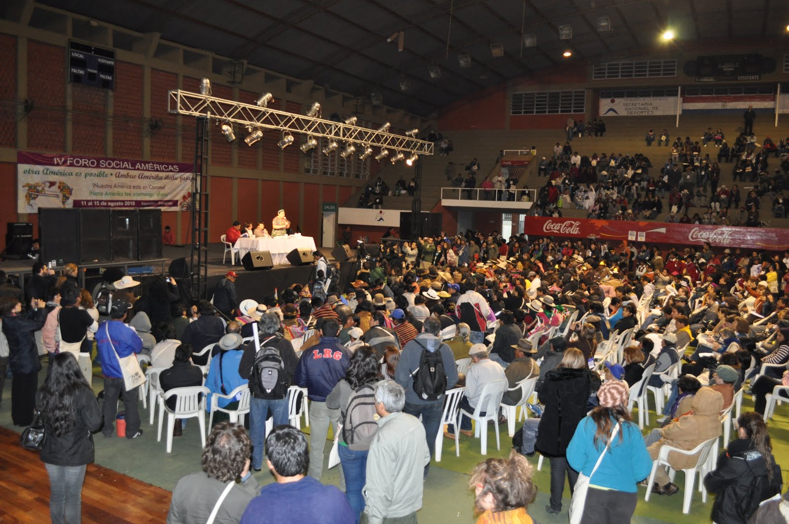 The presence of government leaders at a social forum that was originally presented as a meeting of civil society, of course, is not new. That tension has always been present, and reached a high point with the presidents show at the WSF in Belem in 2009. Perhaps what surprises me here at the ASF is how the social forum organizers openly invited government leaders. Previously, their presence has always involved a dance and a certain amount of “plausible deniability” in which the meetings were not part of the official program even though they were held in parallel in a way so that many participants could attend. For Lugo, it is even more surprising because some social movements have been very critical of his policies. Does the strong presence of Vía Campesina point to a deep divide in social movements, with this wing much more willing to support these “leftist” presidents?